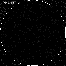 Monte Carlo calculation of Pi converging to three decimal places.